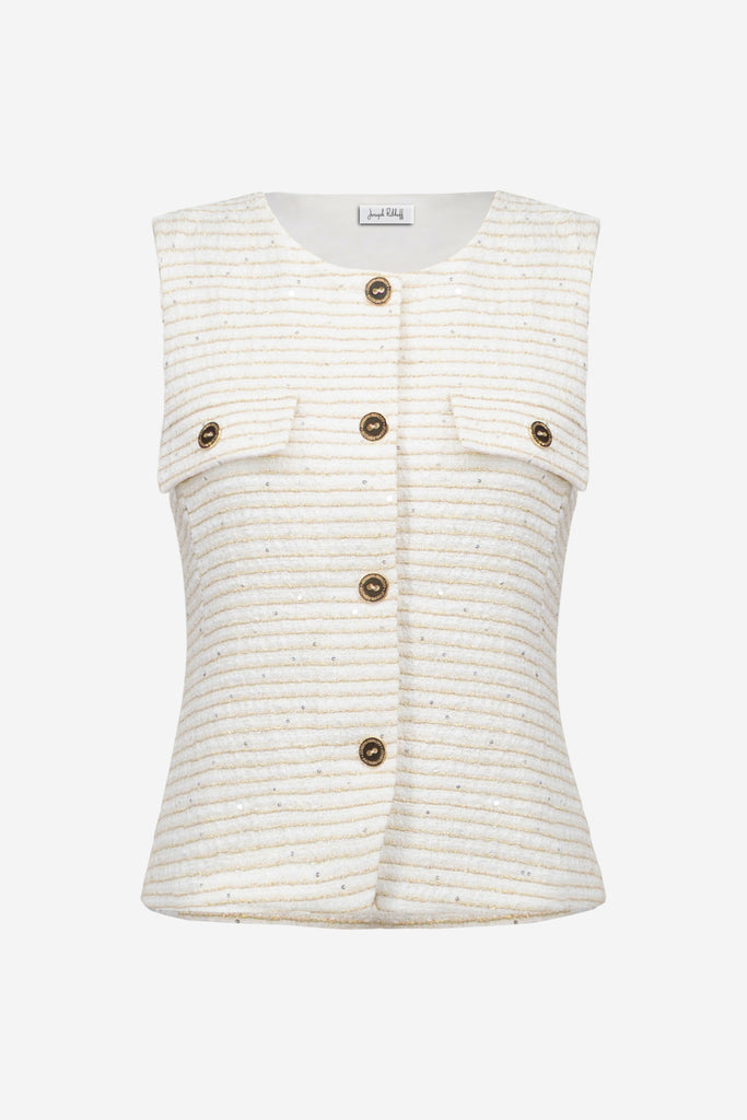 Joseph Ribkoff Bouclé Fitted Vest With Gold Buttons 261113
