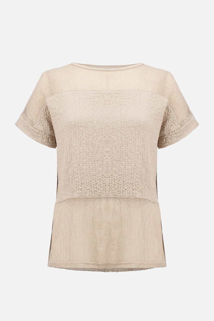 / Joseph Ribkoff Seersucker and Mesh Boxy Top With Boat Neckline 261247