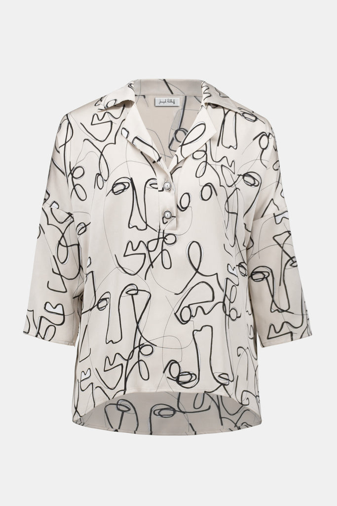 / Jospeh Ribkoff Hammered Satin Abstract Face Print Boxy Top 253230